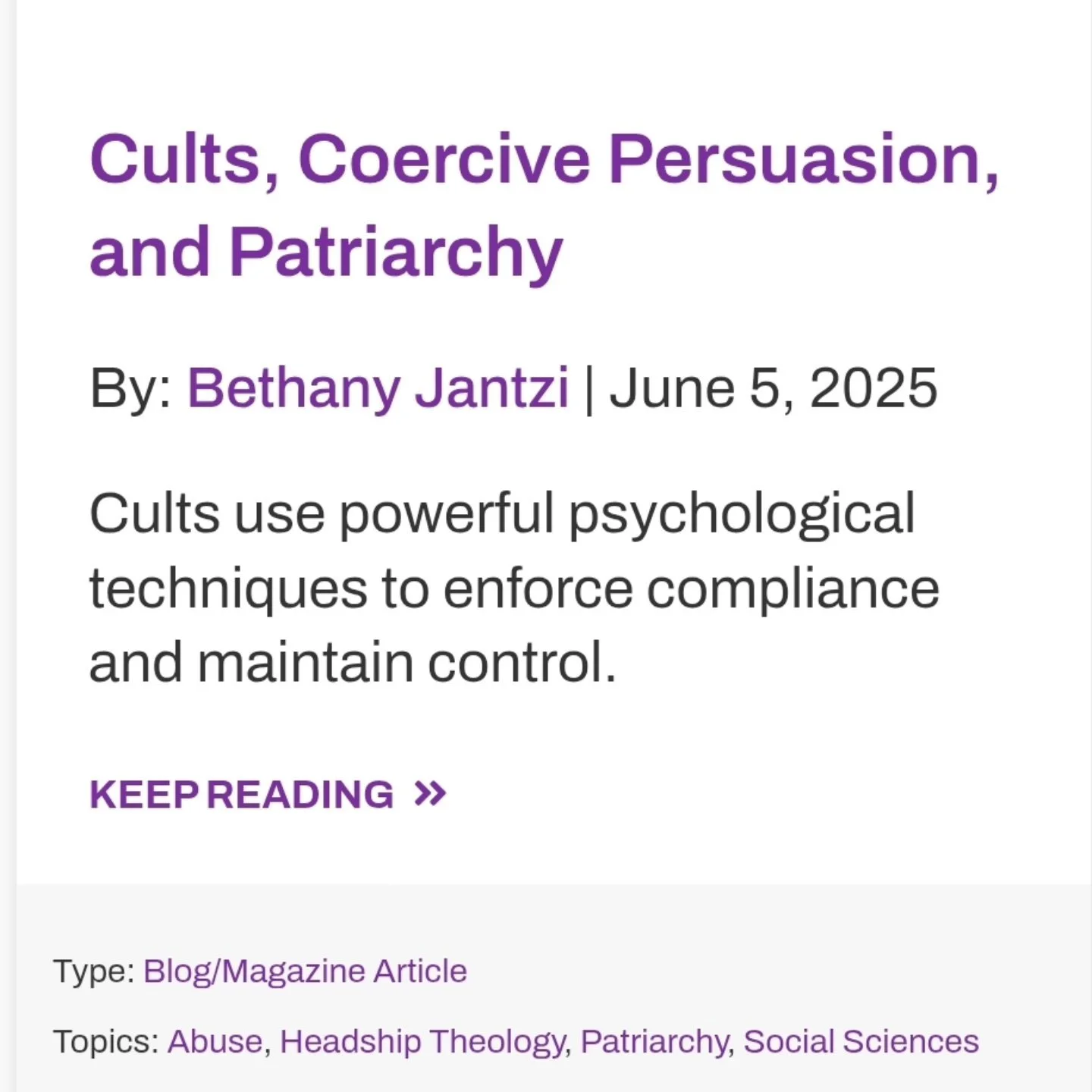 I'm keen to talk about my research dissertation on coercive control and spiritual abuse and hope it can help others recognize this form of religious harm.